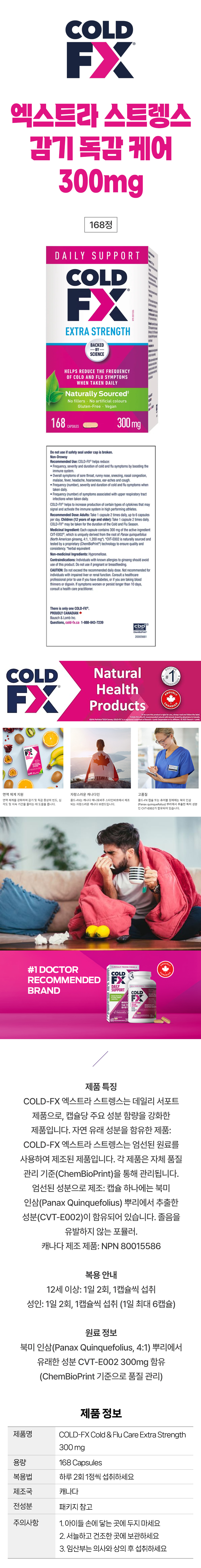 Cold FX ÄÝµå ¿¢½ºÆ®¶ó ½ºÆ®·À½º 300mg 168Á¤ ¸é¿ª·Â °¨±â ¿¹¹æ