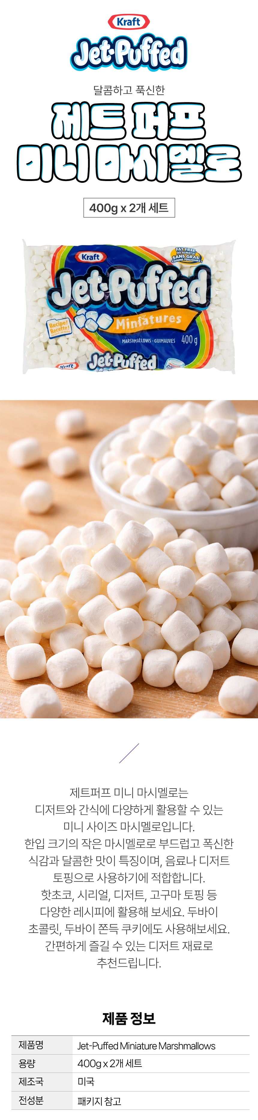 Å©·¡ÇÁÆ® Á¦Æ® ÆÛÇÁµå ¸¶½Ã¸á·Î ¸¶½Ã¸È·Î¿ì 400g 2°³ ¼¼Æ® µÎÂËÄí µÎ¹ÙÀÌ ÃÊÄݸ´ ÄíŰ Àç·á